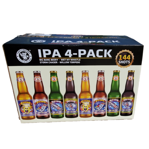 With 4 top shelf 36 shot cakes, IPA 4 Pack will surely quench your pyro thirst. Each cake features a different flavor of effects, though you can't drink this 4 pack... There is still a lot to enjoy about it, grab one for your backyard bbq or party!