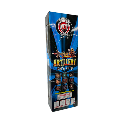 Kingslayer 60G canisters are the new standard in performance. 24 totally unique effects in this ultra premium kit! From Dominator Fireworks