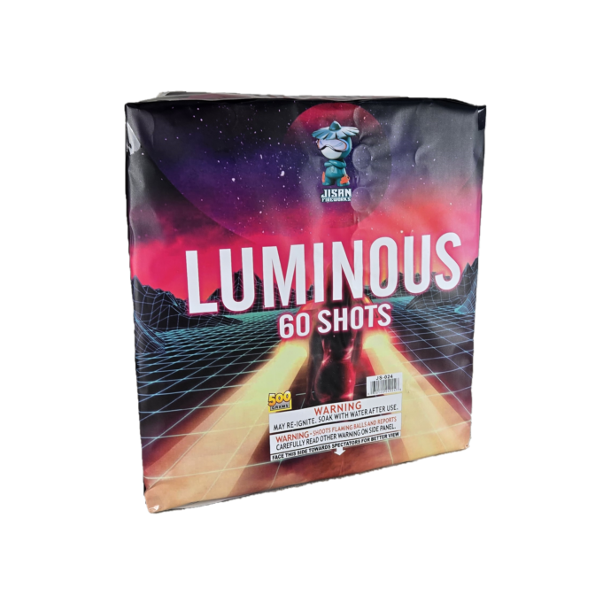 lluminate your night sky with Jisan Fireworks' LUMINOUS—a spectacular 60-shot zipper cake that transforms any event into a mesmerizing show. In just 38 dazzling seconds, LUMINOUS fills the air with rapid-fire bursts, weaving a dynamic and unforgettable pattern of vibrant colors and glittering effects.
