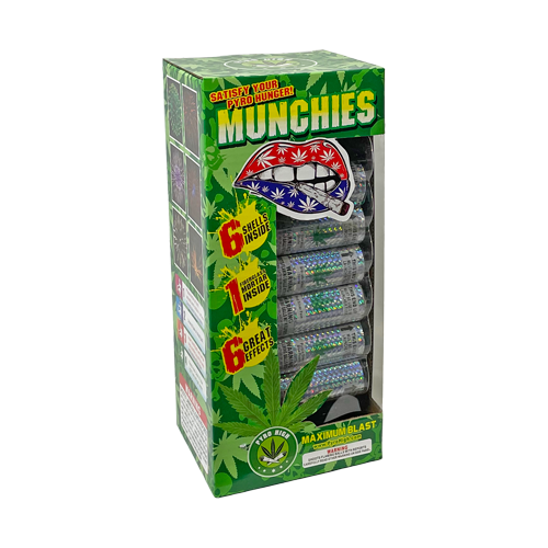 These awesome equivalent to 60 gram canister shells will leave you with cravings for more after every hit. Effects from peony to crackle a different one in each hit all at the highest gram count allowed by law. Note Munchies are a 1.5" canister shell and will not work in a 1.91" mortar! From Pyro High Fireworks