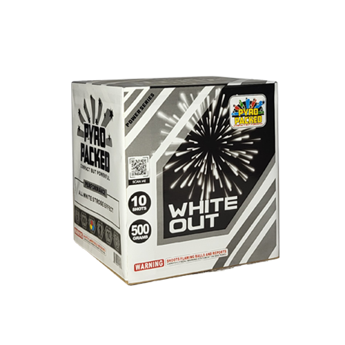 Put on your sunglasses, because White Out is sure to blind you with its 10 huge shots of white strobe! From the Power Series and Pyro Packed! From Pyro Packed Fireworks