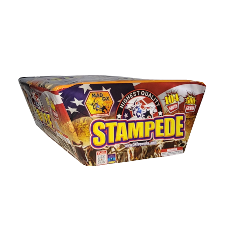 This cake is exploding with high quality! Having 104 fast and furious shots, alternating volleys of colored pearls, whistles and large shells. Super performance from this OX!