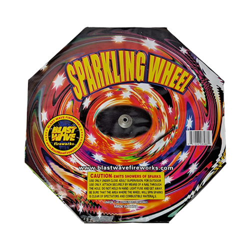 This large wheel gives a screaming performance with loud whistles and brilliant whirling colors. Long lasting with three different color effects and whistles throughout the performance. A great 13 Inch wheel with amazing effects! From Blast Wave Fireworks