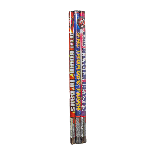 These 10 ball roman candles ends with a bang! Each case contains 48 packs of 3. From Dominator Fireworks!