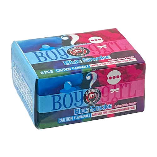 Pure blue smoke in a large canister. Only you know its blue smoke from the blue sticker on the bottom! Great for any boy gender reveal party! The guest will love guessing and you will love how easy it is! Each case contains 24 boxes of 6 smoke canisters, for a total of 144 blue smoke canisters!