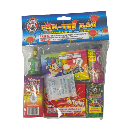 A small cup of tea is in this bag full of small fountains and snaps. Including Champagne Party Popper, Happiness Fnt, Snap Pops, Small Golden Flower, Booby Traps, Small Friendship Fnt. A great item for kids at any party! Each case contains 48 assortments!