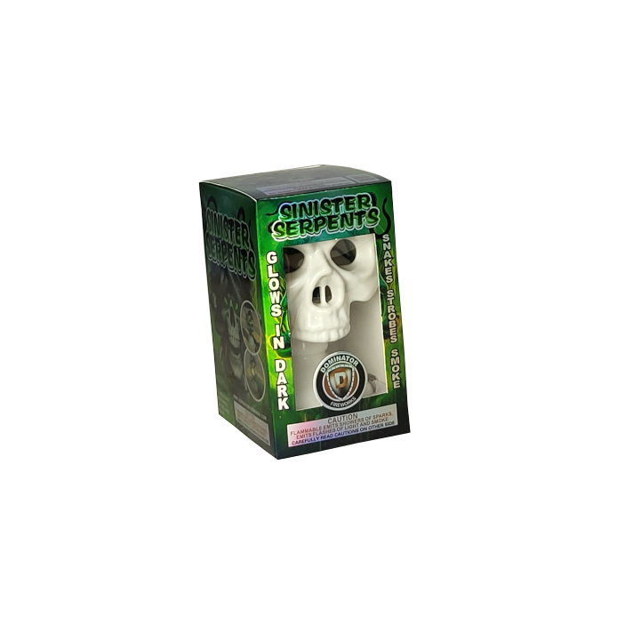 A fantastic novelty product that does snakes out of the top of its head, strobe inside, and green smoke out the nose!