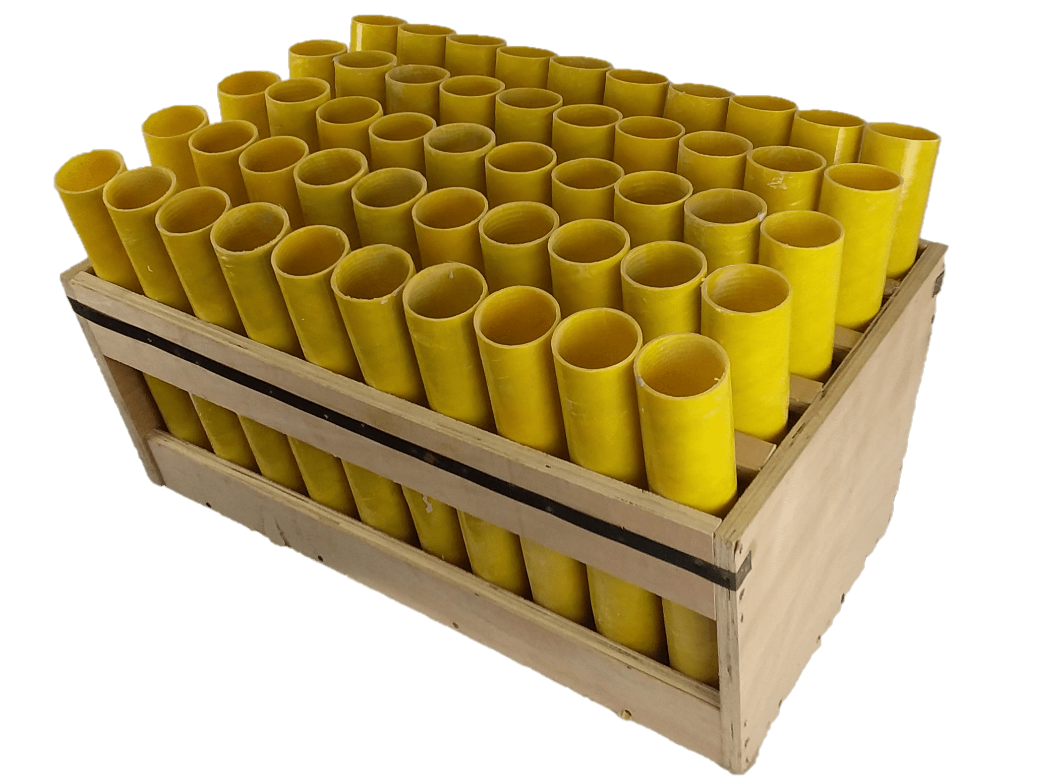 Now selling angled motar racks! Including 50 angled 1.91 inch yellow fiberglass tubes. Some of the best in the business! With these great racks you can angle all your favorite effects. DO NOT USE If your shells are smaller than 1.91 Inch. Firing too small of a shell from too large a tube can cause a low-break, possibly causing personal injury or fires being started. No shells will be included!